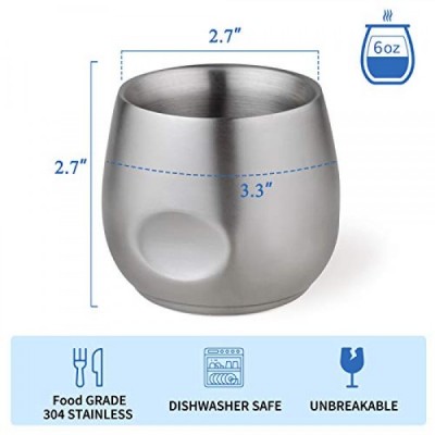 Kitchenexus 스테인레스 스틸 에스프레소 컵 2pcs 세트, 6oz 이중 벽 절연 깨지지 않는 스템리스 텀블러 야외 이벤트 피크닉 파티를위한 작은 컵