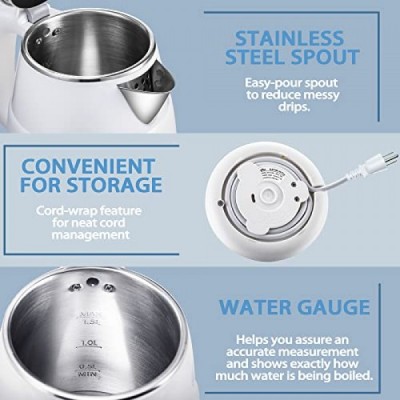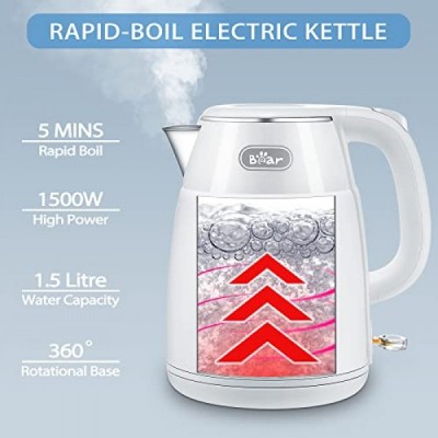 Bear Electric Kettle, 1.5L Rapid-boil Water Boiler, Stainless Steel 304 Inside, 1500W Tea Kettle with Auto Shut Off & Boil Dry Protection, Electric Water Kettle Great for Tea and Coffee