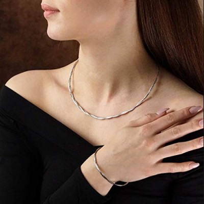 Materia CO-28 Women's Choker Necklace 925 Silver – Women's Necklace Tonda Chain 2 Strand 42-46 cm Rhodium-Plated in Necklace Case, Frosted finish with glitter effect Rhodium-plated, tarnish protection