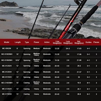 Fiblink Surf Fishing Rod 2 Piece/3 Piece Portable Travel Spinning Rod Saltwater Surf Rod (9'/10'/10'6/12'/13'3)