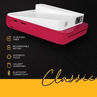 Kodak Smile Classic Instant Film Digital Camera + Bluetooth, 16 MP, 35 Prints / Charge – Starter Pack 3.5 x 4.25 Inches Zinc Paper, Sticker Frames Edition