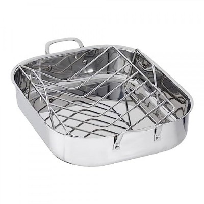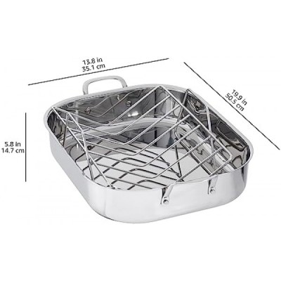 Amazon Basics Stainless Steel Rectangular Roasting Pan with Rack, 16-Inch