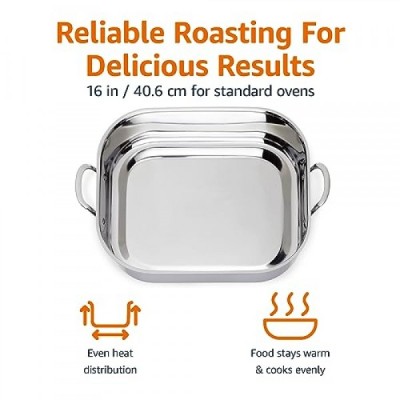 Amazon Basics 스테인레스 스틸 직사각형 로스팅 팬(랙 포함), 16인치