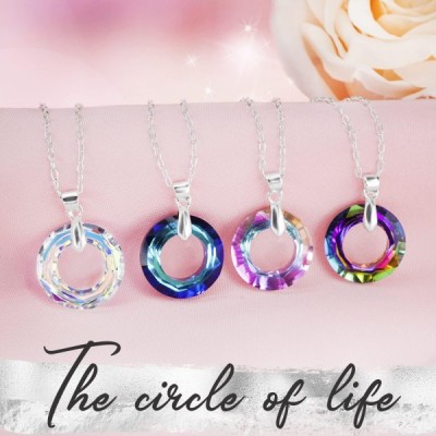 Silver woman necklace with Austrian crystal pendant colors, Collar de plata con colgante cristal austriaco, Sterling Silver, Not applicable