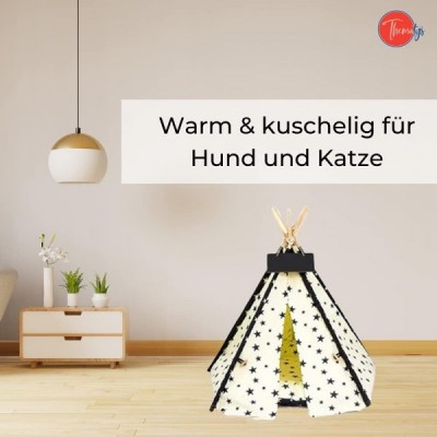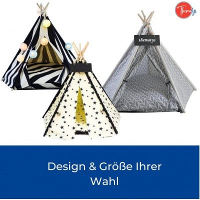 thematys Haustierzelt Hundehütte Hundehaus für Hunde und Katzen - Tipi mit Kissen Hundebett Katzenkorb - waschbar (M, Style 2) M Style 2