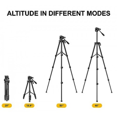 - 포장 목록: 1*60인치 카메라 삼각대, 1*퀵 릴리스 플레이트, 1*다기능 휴대폰 홀더, 1*삼각대 보관 가방, 1*사용자 가이드, 1*VIP 서비스 권한