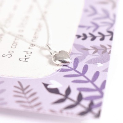 - * Made in the United Kingdom * Hand assembled silver heart charm on silver chain by Manta Makes Jewellery. Each necklace is presented on beautifully smooth cardstock with hand drawn leaves that include a heartfelt message. I love you more than words can say, I love all that we share, so carry a little love with you, and remember how much I care.