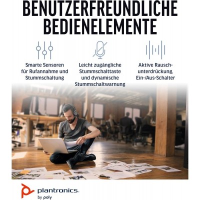 Poly Voyager Focus UC wireless headphones + charging station (Plantronics), microphone with noise reduction, Active Noise Canceling (ANC), PC/Mac/mobile phone via Bluetooth - Teams, Zoom & more Premium Communication USB-