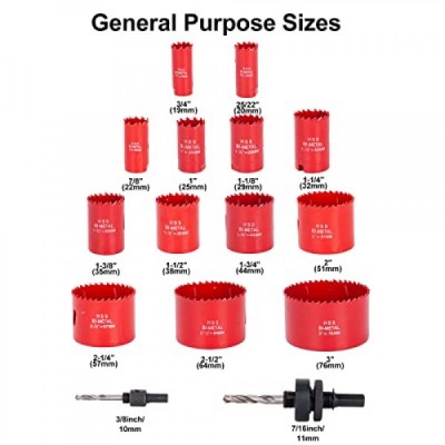 23Pc Bi-Metal Hole Saw Kit, General Purpose Bi-Metal Hole Saw Set 3/4″ to 3″ High Speed Steel M42 Drill Hole Cutter Blade with Mandrels for Metal, Wood, PVC Board, Plastic