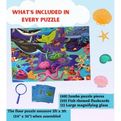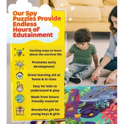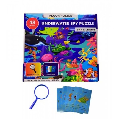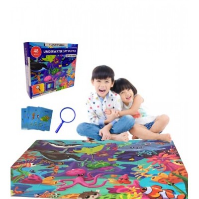 Underwater Spy Puzzle with Flashcards and Magnifying Glass 2ft x 3ft - Large 48 Piece Floor Puzzle for Kids Ages 4-8 Years Old- Kids Puzzles - Educational Gift for Boys and Girls 3,4,5,6,7,8…