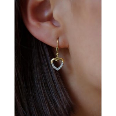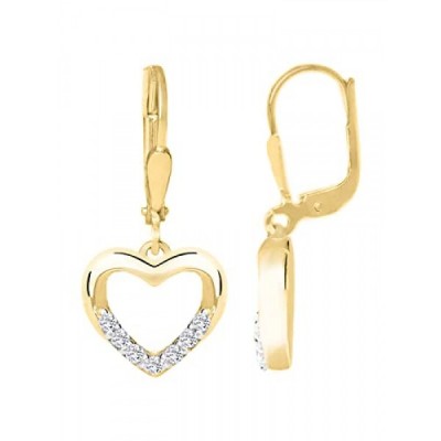 My Gold Girls 여성용 귀걸이 매달려 골드 333 귀걸이 리얼 옐로우 골드(8 캐럿) 지르코니아 포함 23mm x 11mm 하트 모양 하트 귀걸이 고급