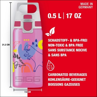 SIGG VIVA ONE Children's Drinking Bottle (0.5 L), Non-toxic Kids Water Bottle with Non-spill Lid, Lightweight Children's Bottle Made of Polypropylene Dino Run