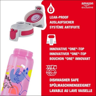 SIGG VIVA ONE 어린이용 물병(0.5L), 엎질러지지 않는 뚜껑이 있는 무독성 어린이용 물병, 폴리프로필렌 Dino Run으로 만든 경량 어린이용 물병