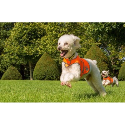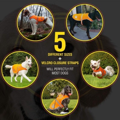 4LegsFriend 개 안전 조끼 (5 사이즈, M) - 야외 활동을 위한 높은 가시성, 낮과 밤의 높은 가시성, 차량 및 사냥 사고로부터 강아지의 시야 확보 | 블레이즈 오렌지 미디엄