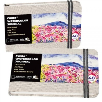 Funto 수채화 저널, 3.5x5.5", 2팩, 각 48페이지, 내부 포켓과 탄성 밴드가 있는 냉압착 수채화 용지, 110lb/230GSM, 수채화 기법 및 혼합 매체용 미술 용품
