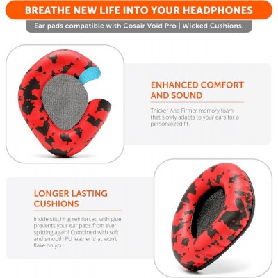 WC Upgraded Replacement Earpads for Corsair Void & Corsair Void Pro Wired & Wireless Gaming Headsets Made by Wicked Cushions | Improved Durability, Thickness, and Sound Isolation | (Red Camo)