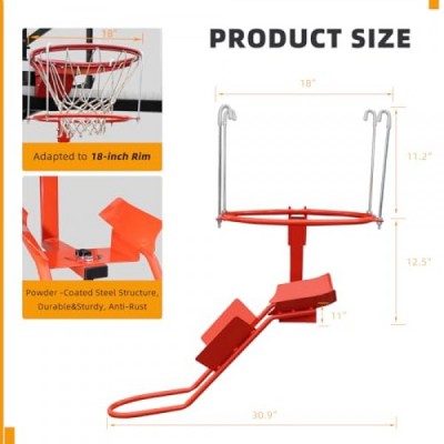 Basketball Return Attachment for Hoop, Heavy Duty Durable Steel Basketball Return System, 180 Degrees Rotatable Basketball Shot Returner for 18 Rim Indoor and Outdoor 【Product Patents】