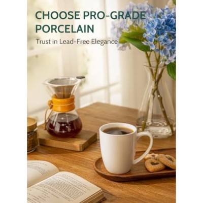 Sweese 도자기 머그 - 커피, 차, 모카 및 멀드 음료용 12온스 - 6개 세트, 흰색