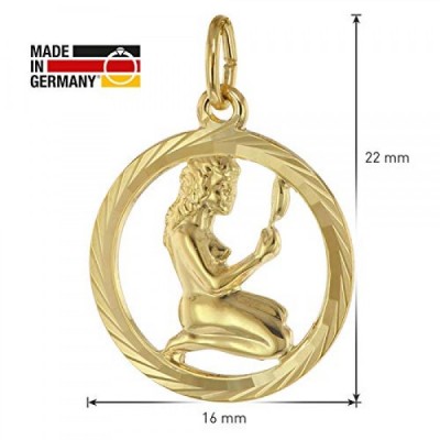 Trendor 처녀자리 조디악 로그인 골드 333 펜던트 직경 16 mm + 목걸이 조디악 로그인 여성을 위한 진짜 금으로 만든 우아한 목걸이, 75940-09, 스털링 실버 골드