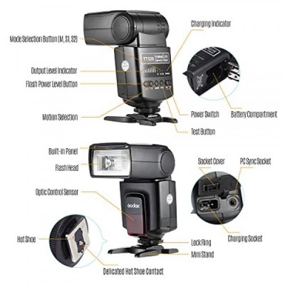 GODOX TT520ⅡUniversal On-Camera Flash Electronic Speedlite + AT-16 2.4G Wireless Trigger Transmitter Guide Number 33 S1 S2 Modes Replacement for Canon Nikon Pentax