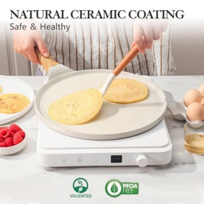 SENSARTE Nonstick Crepe Pan with Spreader, 10-Inch Natural Ceramic Coating Dosa Pan Pancake Flat Skillet Tawa Griddle with Stay-Cool Handle, Induction Compatible, PFOA Free (White)