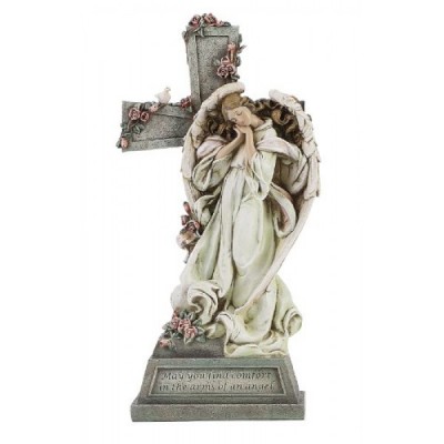 Joseph's Studio by Roman Inc., Angel with Cross, Garden Collection, Religious Statue, Holy Family, Memorial, Angel, Patron Saint, Garden Décor (8x5x14)