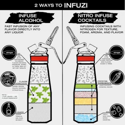 - 훌륭한 음료를 위한 과학 - Infuzi는 수제 칵테일 애호가와 모험심이 강한 칵테일 전문가가 간단한 DIY 니트로 크래프트 칵테일을 만들거나 강력하고 빠른 주입을 통해 완벽한 맛의 알코올을 만들 수 있는 독특한 칵테일 키트입니다. 최고의 맛 해킹입니다. 좋아하는 칵테일에 주입하기 위해 질소 가스(N2)가 포함된 칵테일 셰이커 키트로 사용하거나 주류에 빠르게 주입하여 칵테일용 증류주에 새롭고 맛있는 맛을 더해주는 주류 주입 키트로 사용하세요.