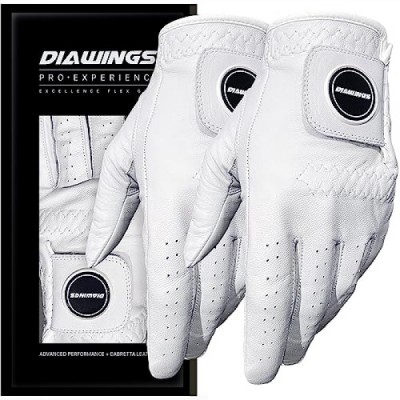 Diawings Cabretta Leather Golf Gloves for Men 2 in 1 Value Pack – Durable, Breathable, Enhanced Tactile Feedback