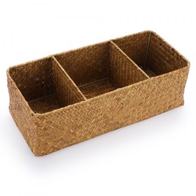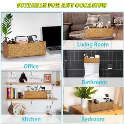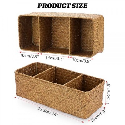 ELLDOO Woven Seagrass Wicker Rattan Storage Basket, Large Capacity Coffee Pod Holder Organizer for K Cup Nespresso Pods, 3-Section Seagrass Storage Box for Coffee bar Shelves Kitchen Cabinets,Brown