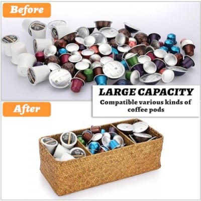 ELLDOO 짠 씨그래스 고리버들 등나무 보관 바구니, K 컵 네스프레소 포드용 대용량 커피 포드 홀더 정리함, 커피 바 선반용 3섹션 씨그래스 보관 상자 주방 캐비닛, 브라