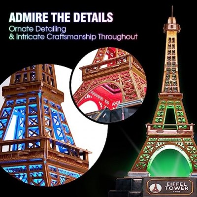 CubicFun 3D Puzzle LED Eiffel Tower with Colorful Lights 3D Puzzles for Adults Model Kits Franch Building Crafts for Adults Brain Teaser Architecture Desk Puzzle Gifts for Women Men