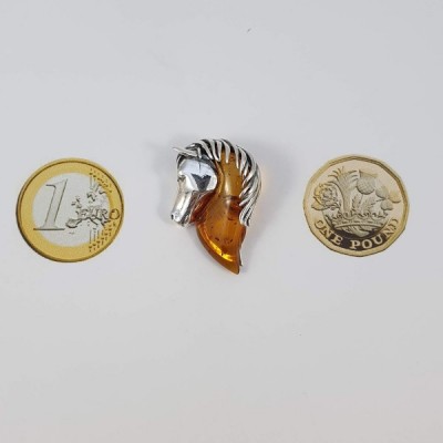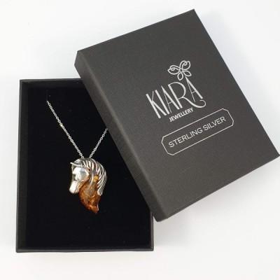 Kiara Jewellery 925 Sterling Silver Horse Head Pendant Necklace Inset With Brown Baltic Amber on 1