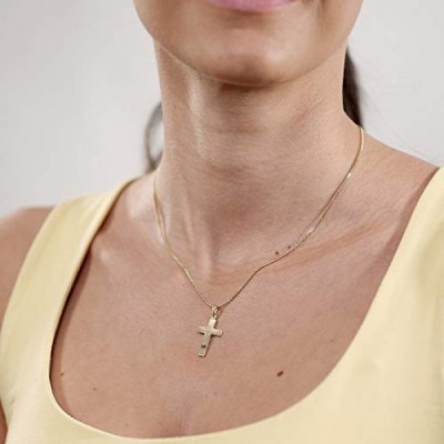 Trendor 크로스 펜던트 333 골드 + 금도금 실버 목걸이 여성용 목걸이, 골드 펜던트, 리얼 골드로 만든 크로스 펜던트, 우아한 선물 35790