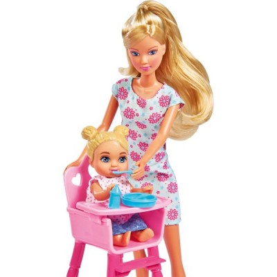 Simba 105736350 - Steffi Love Baby World Puppe, mit 3 Babys, Bett, Kinderwagen, Hochstuhl, Babyschale und viel Zubehör, 29cm, ab 3 Jahre