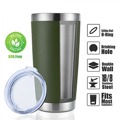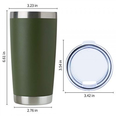 DOMICARE 20oz 스테인리스 스틸 텀블러 벌크(뚜껑 포함), 이중벽 진공 단열 여행용 머그, 분말 코팅 커피 컵, 육군 녹색, 1팩
