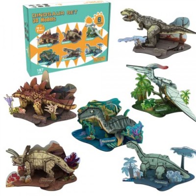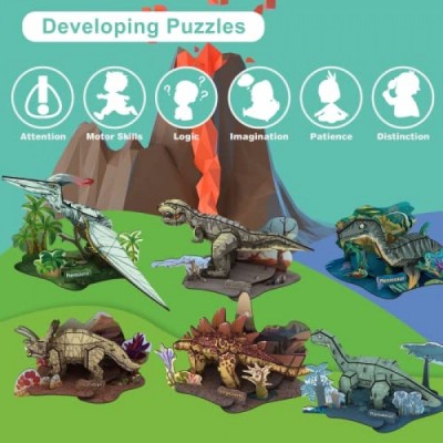 3D Dinosaur Puzzles Set, 6 Pack Stegosaurus, Tyrannosaurus Rex, Stegosaurus, Diplodocus, Plesiosaur, Triceratops, Pterosaur, 197 Pcs Puzzle for Model Kit for Boys Gift Ages 7 8 9
