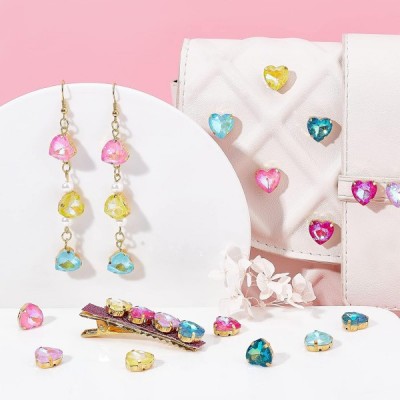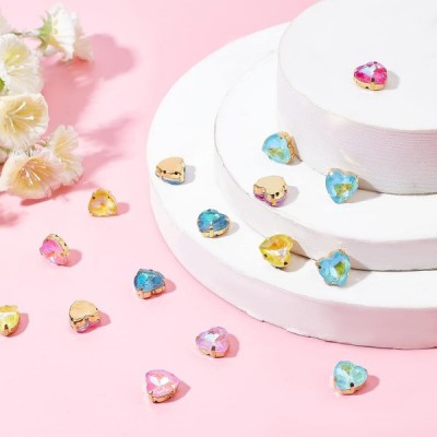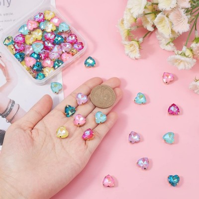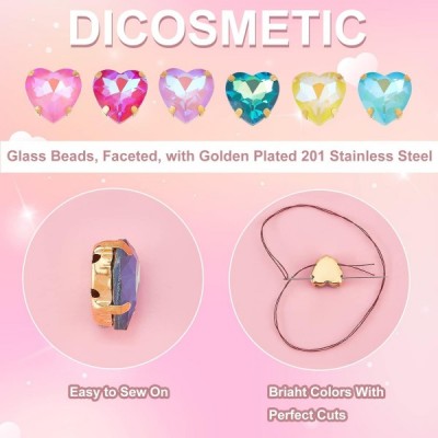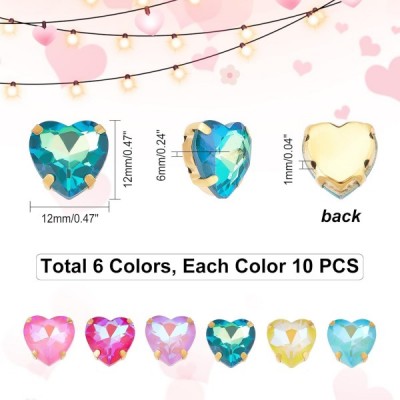 DICOSMETIC 60 Stück 6 Farben Strasssteine Zum Aufnähen Herz Kristall Strasssteine Herzformen Nähen Edelsteine Strasssteine Mit Vergoldeter Klaue Für DIY Schmuck Comstumes Taschen Schuhe Basteln Herz-6 Farben-60pcs