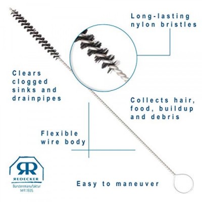 Redecker Nylon Hair Gripping Brush, 11 inches, Sturdy Wire Handle, Removes Hair from Sinks and Drain Pipes, Hanging Loop for Storage, Made in Germany