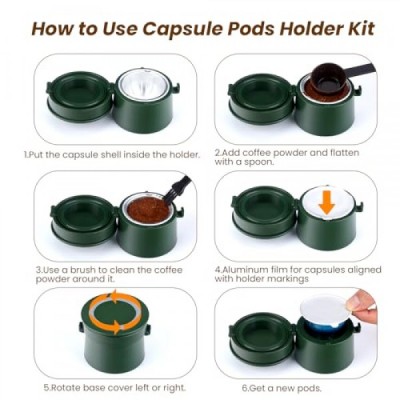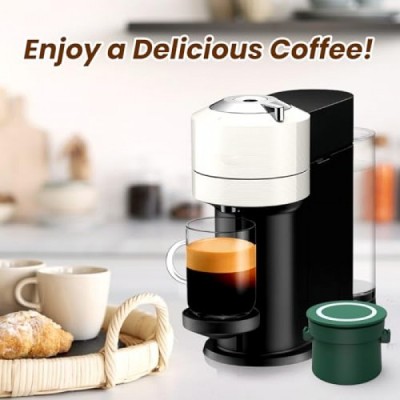 Reusable Vertuo Capsule Set for Reusable Nespresso Vertuo Pods, Upgraded Twist Holder with 100 Pcs Aluminum Foil Seal Lids and Brush Lid Opener,Fits for Refilling Vertuoline Pod