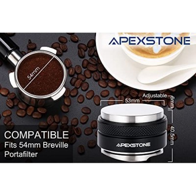 Apexstone 53mm 커피 분배기 및 탬퍼, 53mm 커피 분배기 및 핸드 탬퍼, 54mm Breville Portafilter용 듀얼 헤드 커피 레벨러, 조절 가능한 깊이