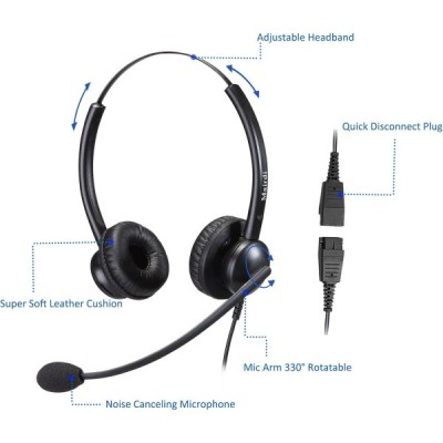 Mairdi Telefon Headset mit Mikrofon Noise Canceling, Duo Büro CallCenter Kopfhörer mit RJ11 und 3.5mm Klinke für Yealink Grandstream Festnetztelefonen und Handy PC Laptops Tablets Duo 510DSA