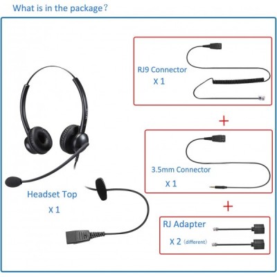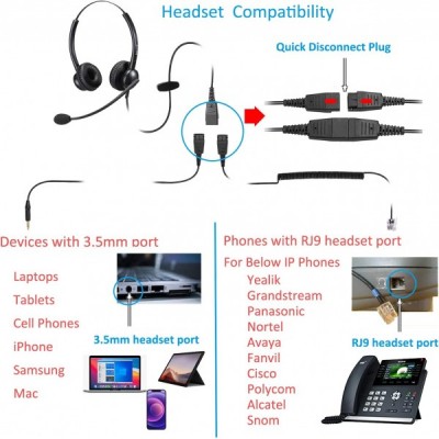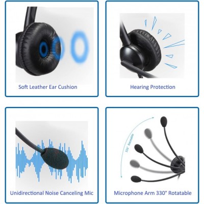 마이크 잡음 제거 기능이 있는 Mairdi 전화 헤드셋, RJ11이 있는 듀오 사무실 콜 센터 헤드폰 및 Yealink Grandstream 유선 전화 및 휴대폰 PC 노트북 태블릿 Duo 510DSA용 3.5mm 잭