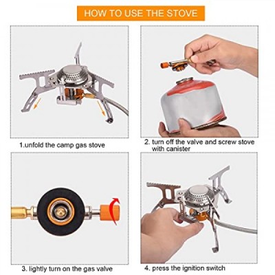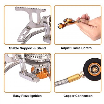 Portable Camping Gas Stove with 1LB Propane Tank Adapter, Foldable Camp Stove Backpacking Stove with Piezo Ignition for Outdoor Hiking Cooking Burner