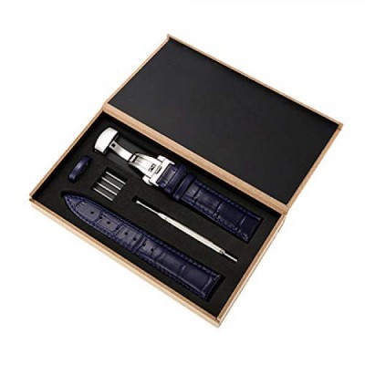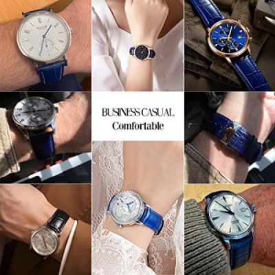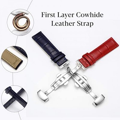 Genuine Calfskin Leather Watch Band,Alligator Grain Deployment Butterfly Buckle Replacement Strap for Men Women 18mm 20mm 22mm 24mm