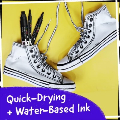 Funcils Rocks Glass Wood Canvas 용 아크릴 펜 5 개 - 검정색 아크릴 마커 1mm, 3mm, 6mm, 10mm, 15mm 팁. 아크릴 펜은 성인과 어린이 모두에게 이상적입니다. 버라이어티 팩 블랙