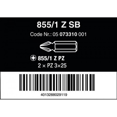 WERA 05073310001 855/1 Z SB bits, PZ 3 x 25 mm, 2 Pieces