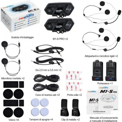 Fodsports 오토바이 블루투스 헤드셋, M1-S 프로 오토바이 헬멧 인터폰 블루투스 헤드셋 통신 시스템 8 오토바이, 인터콤 거리 최대 2000 미터 900mAh 배터리 (트윈 팩) M1-S PRO
