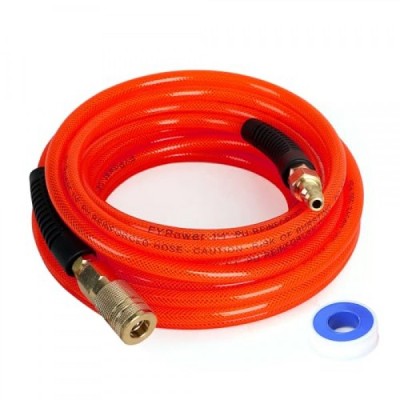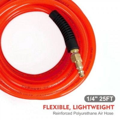 Air Compressor Hose 1/4 Inch x 25 Feet Reinforced Polyurethane (PU) Air Hose with Fittings, Bend Restrictors, 1/4 Industrial Quick Coupler and Plug Kit, Red