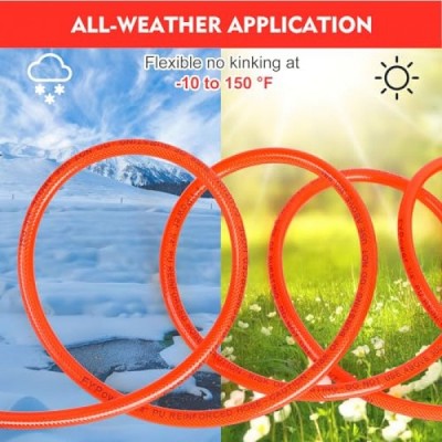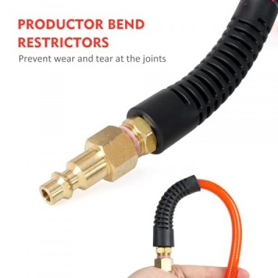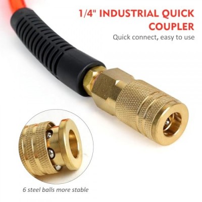 공기 압축기 호스 1/4인치 x 25피트 강화 폴리우레탄(PU) 공기 호스(피팅 포함), 굽힘 제한 장치, 1/4 산업용 퀵 커플러 및 플러그 키트, 빨간색