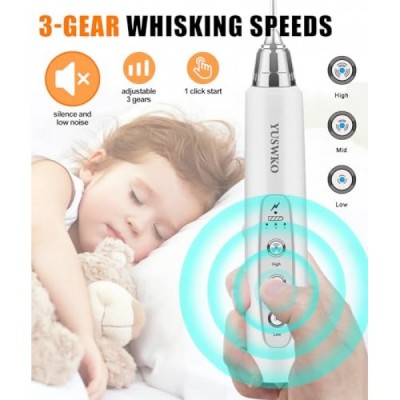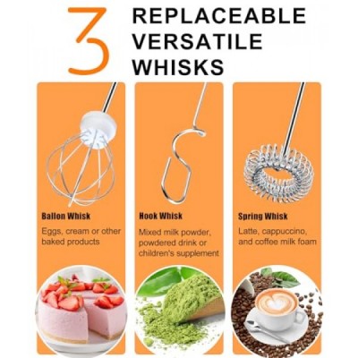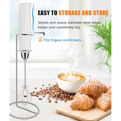 YUSWKO Rechargeable Milk Frother for Coffee with Stand, Handheld Drink Mixer with 3 Heads 3 Speeds Electric Stirrers for Latte, Cappuccino, Hot Chocolate, Egg - White